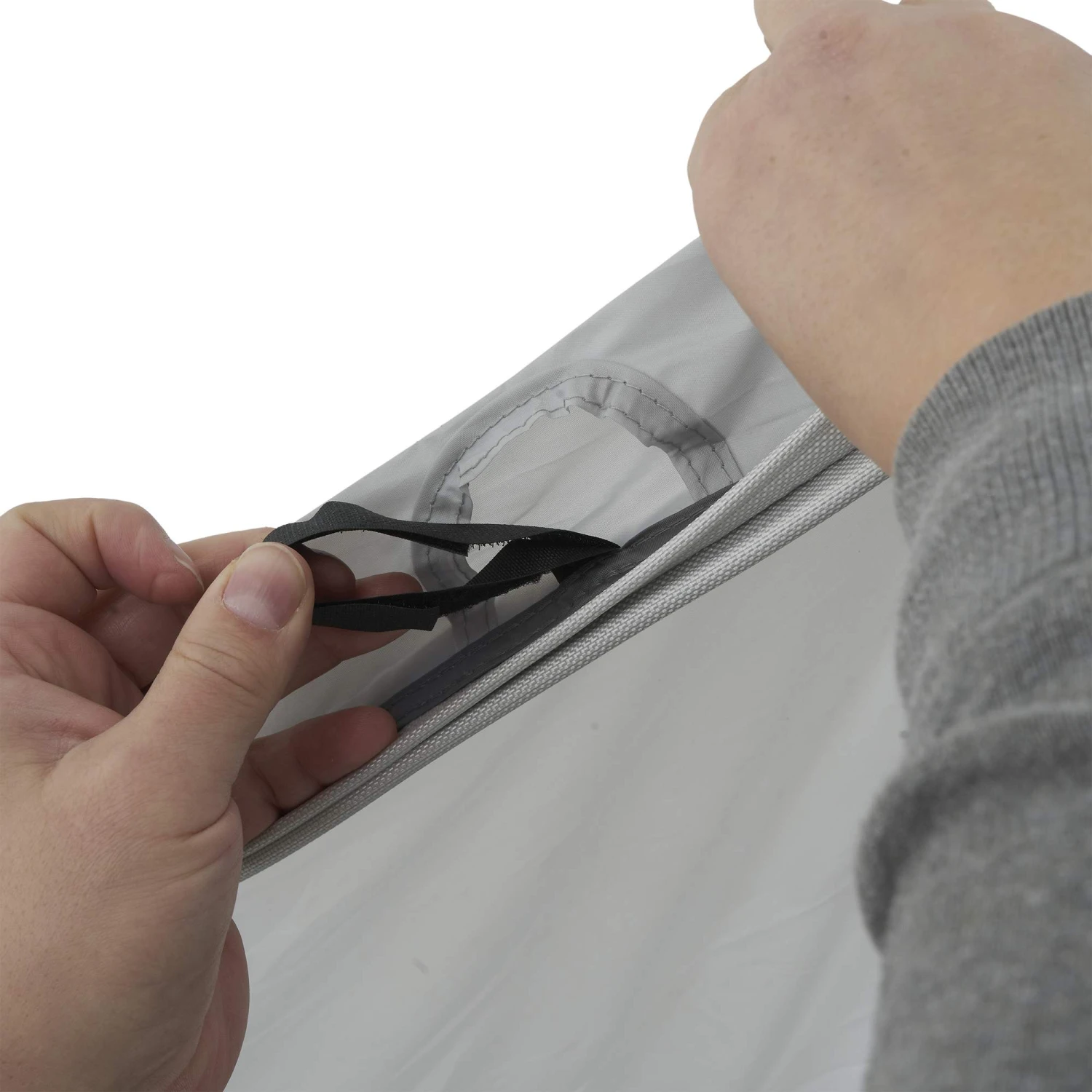 - Einknüpfbare Bodenplane (Knebelverschlussbefestigung in den Eckpunkten)