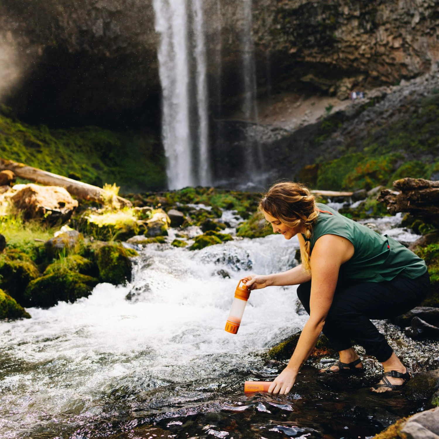 Auch beim Wandern bietet er dir viel Komfort. Wenn der letzte Bach schon eine ordentliche Wegstrecke zurückliegt, die Flasche leer und der Durst groß ist, kannst du mit dem hochwertigen Wasserfilter rasch und zuverlässig Abhilfe schaffen.