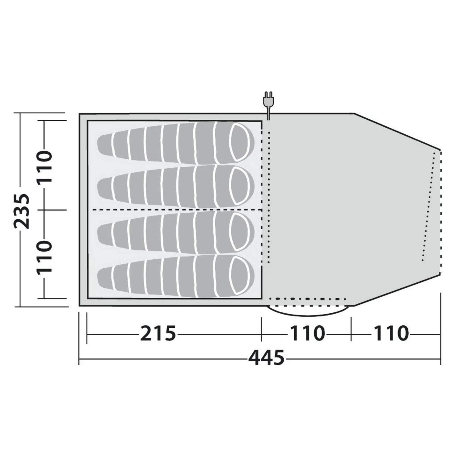 Das geräumige Innenzelt ist abgedunkelt, damit du im Sommer länger schlafen kannst. Die Kabine lässt sich bei Bedarf in zwei Kammern unterteilen, um für mehr Privatsphäre zu sorgen. Benötigst du hingegen eine große Schlafkabine, kann die Trennwand ausgeknüpft und aufgerollt werden.