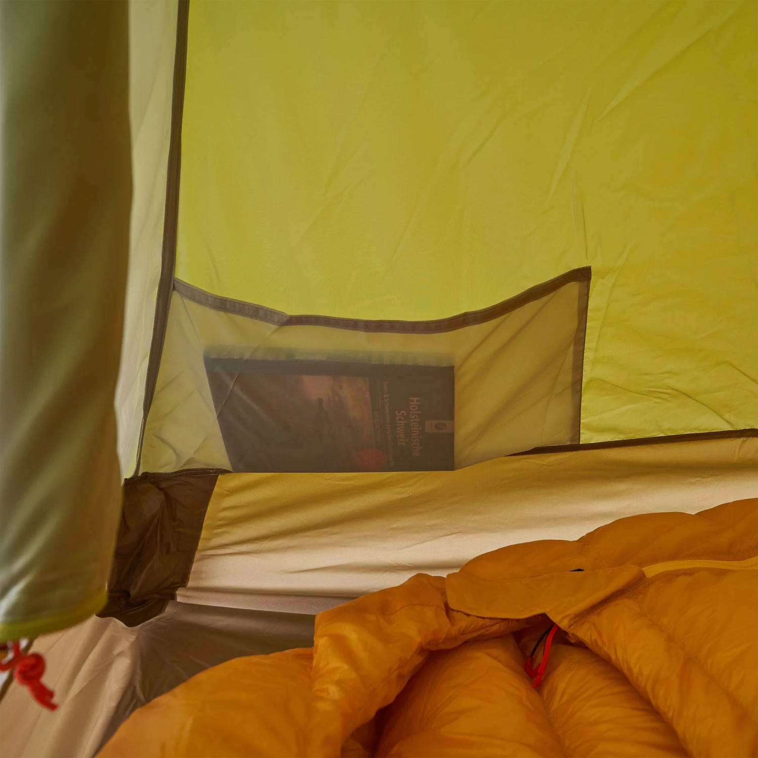 Beim Taurus findest du einige Details, die aus Vaudes High End Serie bekannt sind. Beispielsweise die Wäscheleine im Innenzelt oder die Leinenspanner mit Wickelfunktion für die Zeltleine, die du anschließend knotenfrei transportieren kannst.